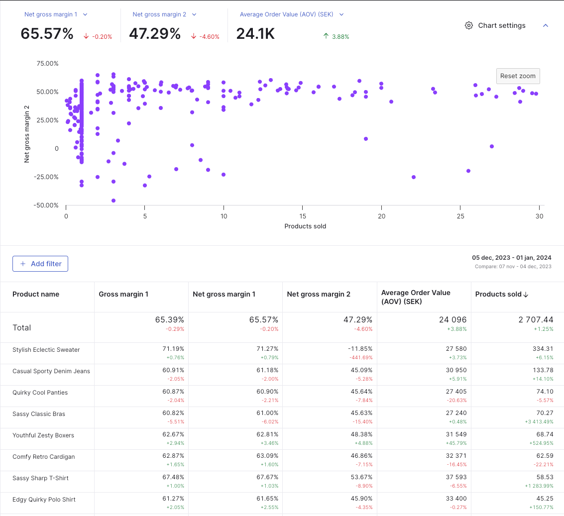 Well, it is as easy as this - if you have products with higher Net Gross Margin 2, meaning higher %-point left of the initial revenue after accounting for the COGS, returns, and all the shipping and transaction costs, you want people to buy these products.