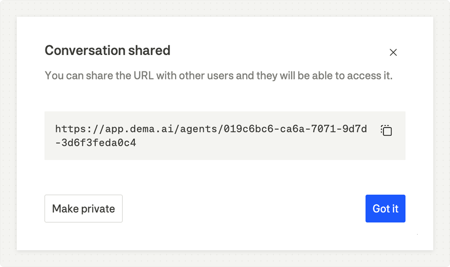 You can now share any Agent conversation with the rest of your organisation.